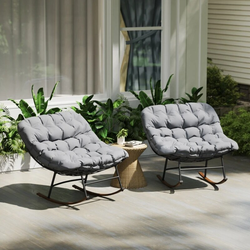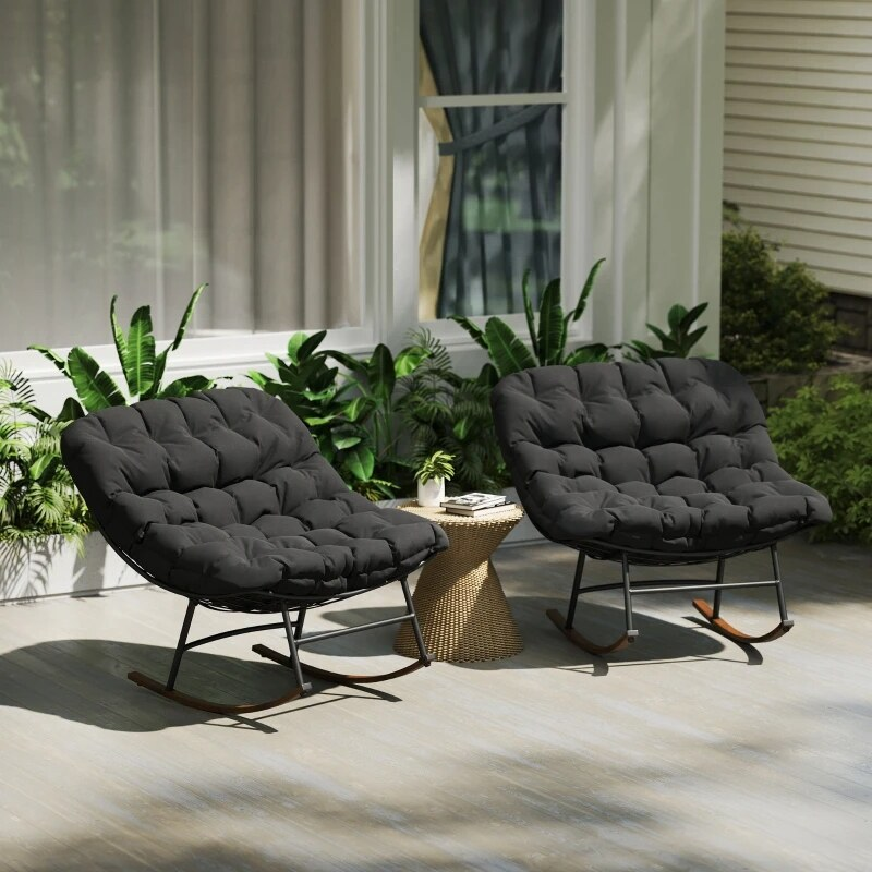 - Made of premium steel with a powder-coated finish for weather resistance, this outdoor rocking chair will work great in your backyard, deck, porch, or poolside.