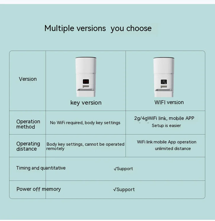 • Multiple Control Options: Choose between manual button operation, app control, or video-enabled intelligence for flexible feeding management.